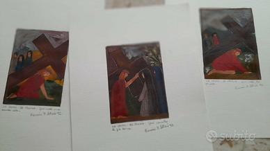 14 Disegni " VIA CRUCIS " su cartoncino cm 34,5 x 24,5 ( tecnica mista tempere- olio) .