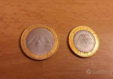 17 gettoni bimetallici provenienti dallo storico Autolavaggio "Pinguino verde" situato a Vesime (Asti) che include due diverse varianti di conio: