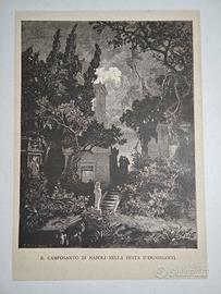 1874 Stampa Antica Camposanto Napoli Poggioreale
