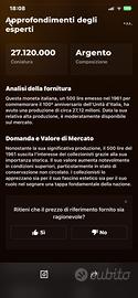 19 Monete in argento, 500 lire 1961