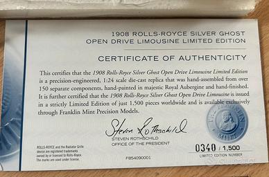 Vendo 1908 rolls-royce silver ghost open drive limousine limited edition. È proprio nuova con il certificato di autenticità e la scatola.