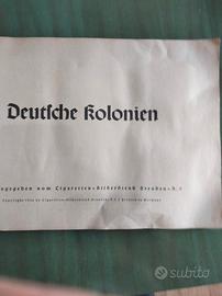 Album che comprende 26 pagine della storia delle colonie, corredato da 21 foto dei personaggi ad esse legati+ 6 carte, di varie dimenzioni, delle aree occupate + 271 figurine ritraenti la vita e gli abitanti della colonie stesse. Scritto in tedesco. Oggetto praticamente unico e di altissimo valore collezionistico edito nel 1929