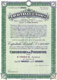1929 CREMONA * EREDI FRAZZI AZIONE FIOR DI STAMPA E NON CIRCOLATA * NESSUNA PIEGA