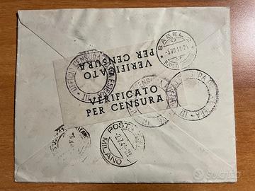 E' presente una piccola lacerazione al centro tuttavia né l'affrancatura né i timbri risultano compromessi. La busta è stata riparata inserendo all'interno una cartolina come evidenziato nelle immagini.