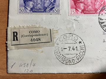 Offresi a collezionista raccomandata per l'estero affrancata con serie del 1941 denominata "Fratellanza d'armi italo-tedesca" Sassone NN- 452-457,