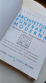 Architettura Funeraria Moderna"diRoberto Aloi, pubblicato dalla prestigiosa casa editriceUlrico Hoeplidi Milano. Si tratta di un'opera monumentale dedicata all'architettura e alla decorazione funeraria, che documenta una vasta gamma di strutture tra cui cimiteri, crematori, edicole e tombe, stele, arredi da cerimonia tutti disegnati da architetti, scultori importanti. Seconda edizione "rifusa ed aumentata", pubblicata il 26 maggio1948. Include un prontuario tecnico molto preciso e interessantissimo dell'architetto Antonio Cassi Ramelli. 253 pagine con ben459 illustrazionie334 disegnitecnici. Valore e Collezionismo: Questo volume è considerato un classico del settore e ha un grande interesse nel mercato del libro antico e dell'architettura. Il valore per un esemplare in buone condizioni oscilla generalmente tra gli90 € e i 100 €. Prontuario tecnico del prof. Antonio Cassi Ramelli con progetti e realizzazioni nazionali e internazionali (da monumenti agli arredi sacri) di #architetti e #scultori tra i quali #mollino #carlomollino #ponti #gioponti #muzio #giovannimuzio #piacentini #marcellopiacentini # beltrami #gardella #annoni #ronchi #buzzi #latis #asnago #vender #melotti #faustomelotti # #ignaziogardella #figinipollini #nava #bianchetti #pizzigoni #vaccaro #wright #franklloydwright #alvaraalto#castiglioni #bbpr #sirtori #greppi #giovannigreppi #montegrappa #redipuglia #sacrari #guerramondiale #monumento #wildt #luciofontana #francescomessina Un'incredibile preziosa raccolta con disegni e foto d'epoca e testi sia di piccola scala che grande come i sacrari delle grandi guerre. Un libro davvero prezioso per gli studiosi e architetti. Qualche pagina con piccoli tagli dovuti al tipo fi carta. Integro e senza appunti o mancanze. . Disponibile al ritiro a mano in Milano.