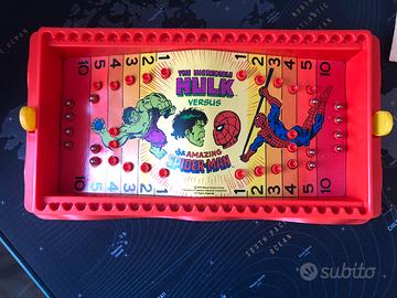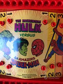 Vero pezzo da collezione! Rarissimo gioco vintage "The Amazing Spider-Man & The Incredible Hulk Magnetic Drop Shot Tennis", prodotto da Durham Industries nel 1978 su licenza ufficiale Marvel Comics Group. Il set include: Plancia di gioco originale con grafiche Silver Age intatte e colori vivaci. 2 Racchette magnetiche originali perfettamente funzionanti. Set di palline metalliche originali. Segnapunti originale (Score Sheet) dell'epoca, pezzo rarissimo da trovare ancora presente. Condizioni: Ottime per un oggetto di quasi 50 anni. La carta del segnapunti presenta naturali segni del tempo (fioriture), che ne attestano l'originalità. Chiedere per altre foto.