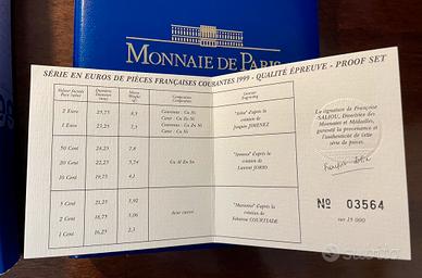 Vendesi monete divisionali euro Francia 1999 fior di conio originali