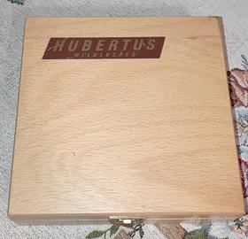 serie di 7 richiami tedeschi Hubertus di cui 5 con il loro cofanetto, tra cui il capriolo