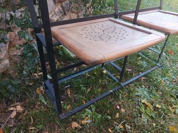 2 antiche sedie da cinema in legno e ferro