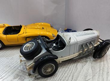 2 Auto in scala, Mercedes SKK + Ferrari Gialla. Modellini in metallo (usati). Misurano in lunghezza cm 25 circa.