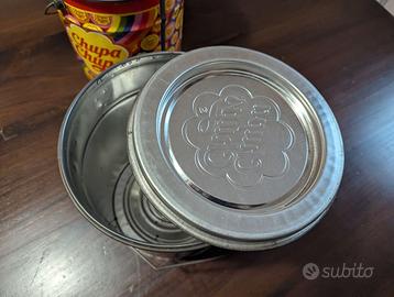 2 Barattoli di chupachups vuoti anni "90 completi di coperchio in buono stato, vendesi anche singolarmente