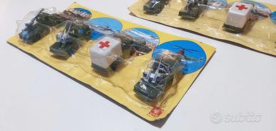 2 RARIBLISTER (differenti fra loro) con mezzi militari in plastica rigida ProduzioneMADE IN ITALY (marca PRB BOLOGNA) vintage ANNI '70 COME DA FOTO - fondi di magazzino