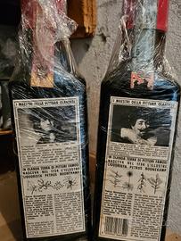 con figure diverse , una bottiglia l'etichetta in basso e rovinata. fare riferimento foto