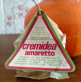 bottiglia da collezione vintage liquore Cremidea Amaretto Beccaro originale, sigillata e completa di kit post-apertura originale.