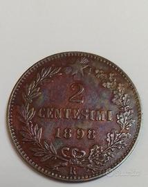 IL Valore da 2 centesimi si presenta RIGOROSAMENTE AL NATURALE E AUTENTICA 100X100) RIMASTA INALTERATA NEL TEMPO, DAL 1898, AD OGGI, CON PATINA ECCELLENTE AL NATURALE.