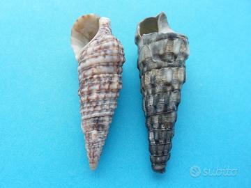 Due conchiglie di tipo Cerithium, perfette per collezionisti o per decorazioni. - Una conchiglia misura 49 mm. - L'altra conchiglia misura 53 mm.