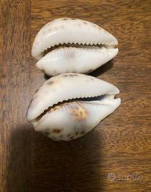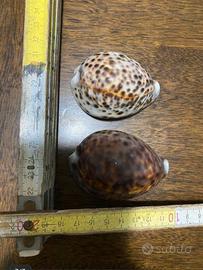 Vendo viste e piaciute 2 conchiglie ciprea tigre (Cypraea tigris) da collezione, per acquario o per decorazioni su tavola, scrivania o mobile.