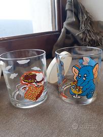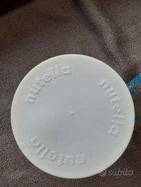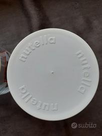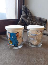 Set di 2 contenitori bicchieri in vetro con tappo in gomma, linea Nutella, originali anni 1998 1999. Tenuti benissimo. Un piccolo graffio su uno dei coperchi (come da foto). Diametro circa 7, altezza 8 totale (in contenitore ha fondo di 0,5)