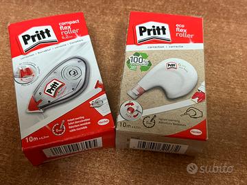 2 correttore Pritt nastro da 10 metri l'uno. Originali, nuovi. Vendo unitamente, ideali per casa, scuola, ufficio. Possibilità di consegna a mano zona centro Milano oppure sera o weekend in piazzale Martini, zona sud di Milano.