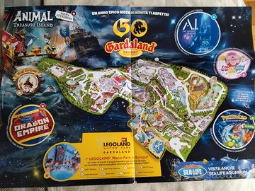 Due depliant - Mappa della Città dei divertimenti, Gardaland, pieghevole Anni 2024 e 2025, Ottimo stato, no pieghe no scritte
