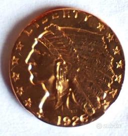 MONETA USA DA 2 DOLLARI E 1/2 ORO TIPO INDIANO IN CONDIZIONI SPL