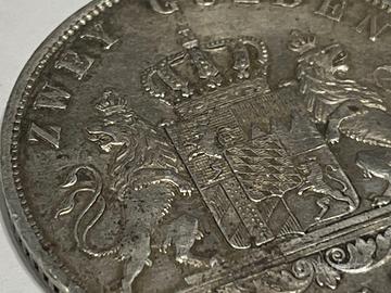 2 Gulden 1856 Maximilian II Baviera Argento Moneta Antica Vendo rara moneta in argento 2 Gulden 1856 con effigie di Maximilian II König von Bayern. • Anno: 1856• Stato: circolata, buoni dettagli visibili• Materiale: argento• Diametro circa 30 mm• Originale d’epoca Dritto: busto di Maximilian IIRovescio: stemma reale bavarese con leoni araldici e corona. Moneta molto interessante per collezionisti di numismatica europea del XIX secolo. Foto reali della moneta in vendita. Epoca 1400-1900 Over 200 years old No Paese/provincia Bavaria, Germania Sovrano Massimiliano II Emanuele di Baviera Metallo prezioso Argento Condizione Non gradata Peso 21,21 g Numero di articoli 1