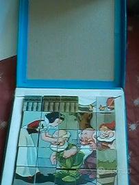 2 giochi VINTAGE puzzle multipli ( 6 + 6 ) a CUBI x bimbi a) RARO e originale W.Disney "Biancaneve e i 7 nani" 25 cubi (lato 3,5) per 6 scene da ricostruire completo delle apposite figure guida Scatola cartone a valigetta cm. 23 x 23 x 4 b) VINTAGE puzzle n. 20 cubi (lato 3,7) e sei scene con animali completo delle apposite 6 figure guida Scatola plastica a valigetta cm. 20 x 17 x 4 Giochi datati per collezionismo. Condizioni più che buone, con qualche acciacco alle scatole, e a qualche cubo. Altre foto a richiesta. cad. eur 64 tratt. sconti per acquisti multipli, anche su altri miei annunci. Consegna gratuita in Torino, oppure spedizione.