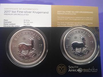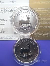 Nel 2017, nell'anniversario dei primi 50 anni dalla 1^ emissione del Krugerrand d'oro, la famosa moneta è stata emessa per la prima volta anche in argento, con un valore nominale di 1 rand e un contenuto pari ad 1 oncia di puro argento 999/1000; il dritto raffigura il ritratto di Paul Kruger, il retro l'immagine dello springbok (l'antilope simbolo nazionale del Sudafrica). La moneta del 2017 (battuta in edizione limitata) è corredata da apposito certificato di autenticità e di descrizione dell'oggetto.