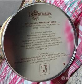 latta biscottiera 50 anni MULINO BIANCO, "50 Anni di Ricordi Buoni" nuova, mai usata 1 a 7€. entrambe a 12€