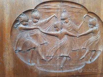 2 lettini legno, artigianato italiano, bellissima incisione /scolpito girotondo bimbi