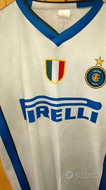 Colore bianco con risvolti nerazzurri. Condizioni ottime, indossata pochissimo. Taglia S. Prodotto ufficiale Inter.