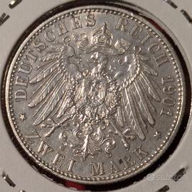 Moneta da 2 Marchi 1901 Germania. Condizioni visibili in foto. per ulteriori informazioni non esitate a contattarmi in privato. forma lotti per risparmiare sulla spedizione!