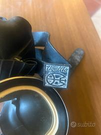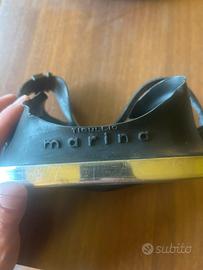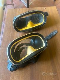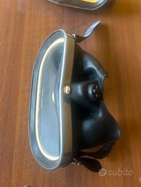 Vendo coppia di maschere subacquee vintage originali Tigullio Marina, iconiche per il loro design con inserti gialli e cornice in acciaio. Maschera 1: In buone condizioni generali, gomma ancora flessibile e vetro integro. Perfetta per collezione o esposizione. Maschera 2: Presenta gomma secca dovuta al tempo, ideale come pezzo da ricambio o per recupero componenti originali.Vendute come oggetti da collezione/modernariato, non testate per uso professionale. Un pezzo di storia della subacquea italiana "Made in Italy".