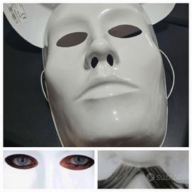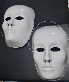 2 Maschere con superfici facciali lavabili e quindi truccabili o adattabili ad altro come adesivi in baffi e barba o parrucche di bambole. Una di esse ha un leggero e corta taglio non influente su nulla.