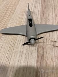 modellini di aeroplani, un elegante monoplano grigio e un classico biplano bianco. Entrambi i modellini sono in buone condizioni.