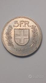 Due monete da 5 Franchi Svizzeri, una coniata nel 1981 e l'altra nel 1985. Entrambe presentano lo stemma svizzero al centro.