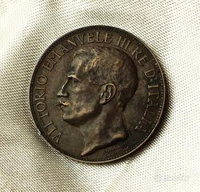 R/ Semibusto del Re volto a destra in uniforme e con il collare dell’Annunziata. Attorno: VITTORIO EMANUELE III RE D’ITALIA. Sotto il busto il nome dell’autore D CALANDRA.