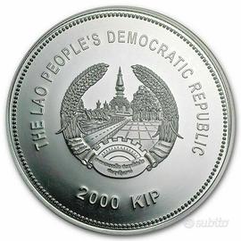 DRAGON Giada Anno Lunare 2 Oz Moneta Argento 2000 Kip Laos 2012