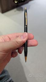 Una penna a sfera oro Papermate Germany, una penna a sfera nera con rifiniture oro, una penna porta mine nera con rifiniture oro. Tutto incluso in custodia verde CROSS originale. Include anche un contenitore con mine di ricambio e un contenitore con inchiostro blu di ricambio per una delle due penne a sfera. Nuove mai usate. Prezzo trattabile. Mai