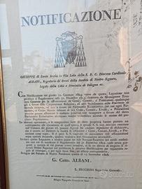 Notificazione Card. Albani 1824 e Decreto Napoleone 1812. Dimensioni cornici 48x32