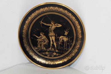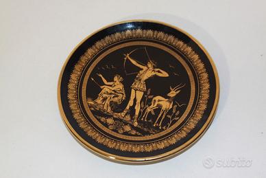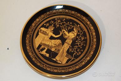 n°2 Piatti in porcellana greca dorati oro 24 carati. Arte murale di colore oro - Piatti decorativi greco antico vintage fatti a mano - DIAMETRO CM. 13,5