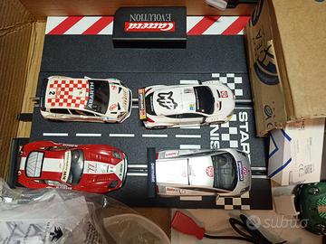 2 Piste Carrera Evolution più parti acquistate per ampliare per un totale di , 1 curva sopraelevata, 2 rettilinei rialzati , 26 rettilinei, 23 curve, 10 vetture Carrera e Ninco di cui 5 nuove , tanti ricambi , piloni, guardrail, incastri , contatti striscianti , trasformatore a due uscite e due controller. A chi interessa ho molte macchinine micro Scalextric con pianali motore di ricambio che volendo vanno benissimo anche sulla pista Carrera.