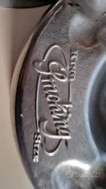 2 posacenere pubblicitari vintage in metallo, caratterizzati dal logo del marchio di cartine per sigarette "Smoking" e dalla dicitura "King Size".