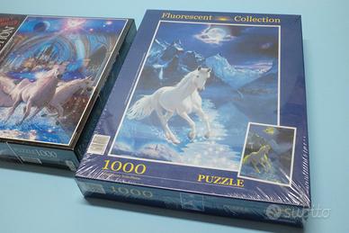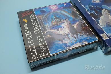 Lotto 2 Puzzle con immagini stile Fantasy con unicorni, in scatolo originale nuovi con cellophane protettivo: