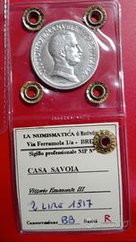 monete del regno d'Italia 2 lire quadriga briosa serie completa anni 1914/15/16/17 rara e periziata