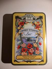 Scatole in metallo Provence d'antan coffret 3 tisanes bio gialla+scatola Novi verde