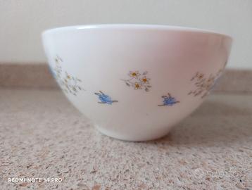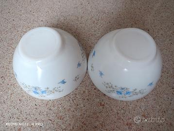 Vendo 2 nuove scodelle Vintage 1970 della Arcopal. Misure: diametro 13cm.xH.7cm. Materiale vetro opalino borosilicato bianco, disegno fiore Myosotis blu. Materiale lavabile in lavastoviglie e adatto a frigo e microonde. Prezzo 15 euro, costi di spedizione esclusi.
