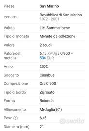 Vendo in confezione originale monete d'oro anno 2002 in blocco, Repubblica di San Marino: