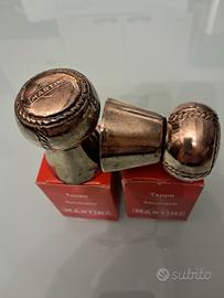 2 tappi x lo spumante Martini vintage anni 60-70 . Materiale metallo argentato con logo Martini impresso ed eleganti decorazioni.